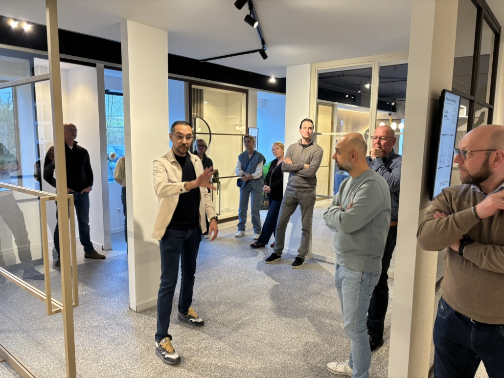 Gesplitst in 2 groepen kregen we na een algemene inleiding een uitgebreide rondleiding door de mooie showroom en de moderne fabriek (met eigen sportruimte!).